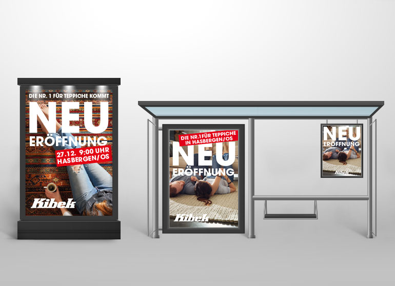 Auch das Erstellen von Plakaten und diversen Außenwerbungen wie Citylights, Megalights und Hausplakaten, gehörten während meiner Zeit bei Teppich Kibek zu meinen Aufgaben.