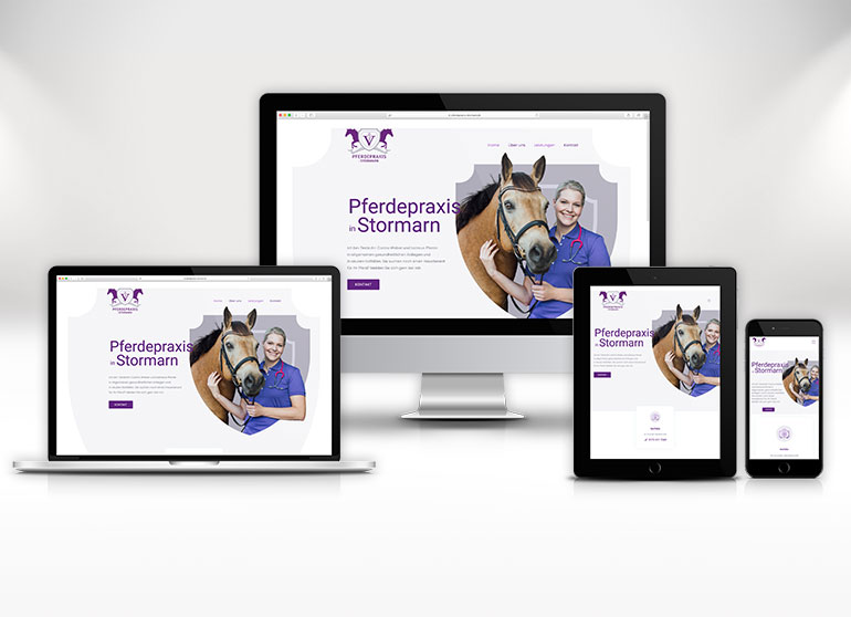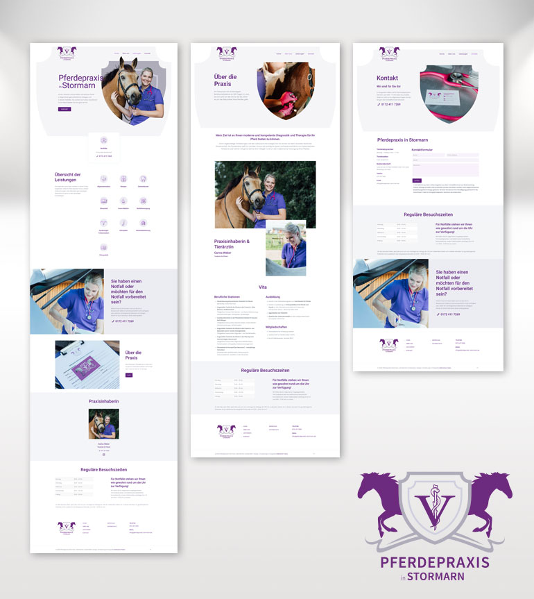 Für die Pferdepraxis in Stormarn habe ich nach der Entwicklung des Corporate-Designs auch eine dazu passende Website erstellt. Die Farbe Lila sollte dabei eine zentrale Rolle spielen, sowie die Notfallbetreuung rund um die Uhr, durch die Praxisinhaberin Carina Weber.